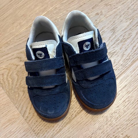 Hummel joggesko til barn i størrelse 24. Unisex-modell i blå farge med hvite detaljer og brun yttersåle. Skoene har borrelåslukking for enkel av- og påtaking. Overdelen er i tekstil og syntetisk materiale, med polstret kant rundt ankelen for bedre komfort. Yttersålen er i gummi med mønster for grep. Egnet som hverdagssko til barn.