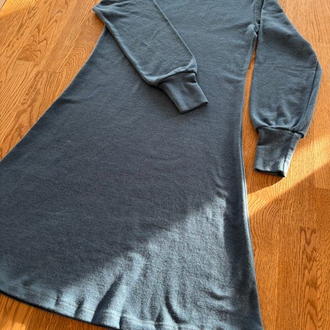 Selger ny ubrukt ullkjole til dame fra nøstebarn i fon grønn farge.. En deilig ullkjole med hette - til jobb eller som koseplagg hjemme og på hytten. Flott både med ulltights og jeans til.