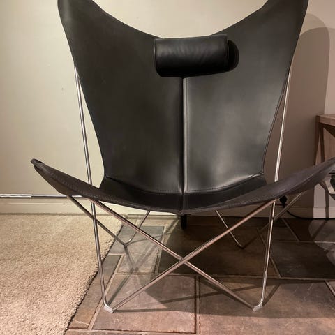Mørk brun skinntrekk som er lett å ta av. Enkel å rengjøre. Stolen er lett, men samtidig solid gir bruk.