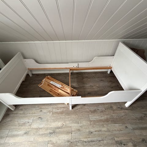 Artek juniorseng i tre. Sengen har sengebunn med lameller og sidepaneler som gir støtte på kortsidene. Passer til barn i overgang fra sprinkelseng til vanlig seng. Egnet for bruk på barnerom som egen seng eller som ekstra seng. Madrass følger vanligvis ikke med og må tilpasses sengens mål.