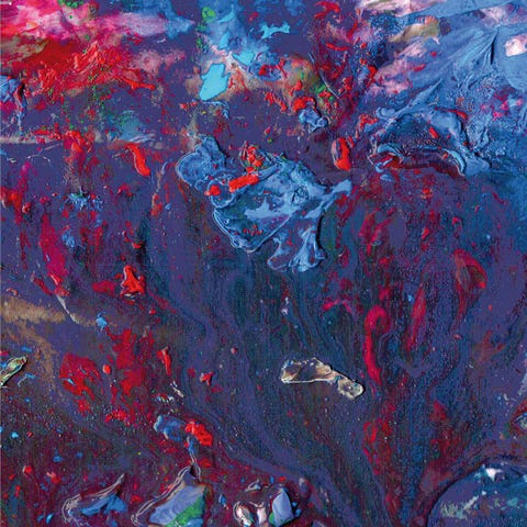Pink Floyd Meddle vinylplate. Albumet har et abstrakt omslagsdesign i blå og brunlige toner. Innersiden viser sort-hvitt-foto av bandmedlemmer.