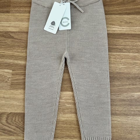 Cubus ullbukse til barn i størrelse 80. Ubrukt, lappen er fortsatt på. Buksa er i 100% merinoull. Strikket materiale med elastisk linning i livet gir god passform.