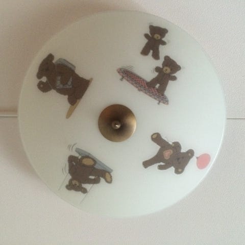 Lampen er i klar glass med frostet sirkel innerst.