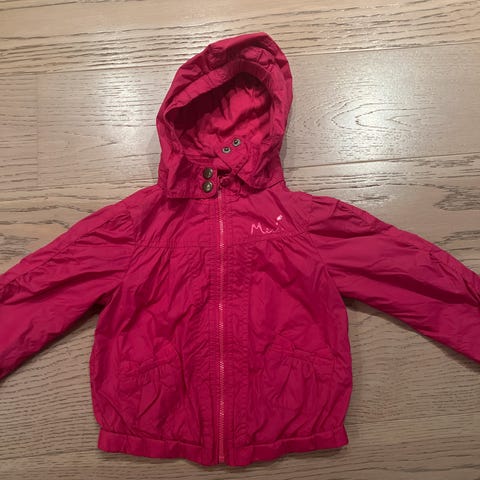 Benetton overgangsjakke i størrelse xxs / 100 cm. Vannavvisende og lett foret. Den har glidelås foran, hette og strikk nederst på ermene og i livet for bedre passform. Søte detaljer som kreppede lommer og sløyfer på armene. Innsidefôret har lyst mønster med hjerter. Pent brukt kun til fint. Kan sendes.