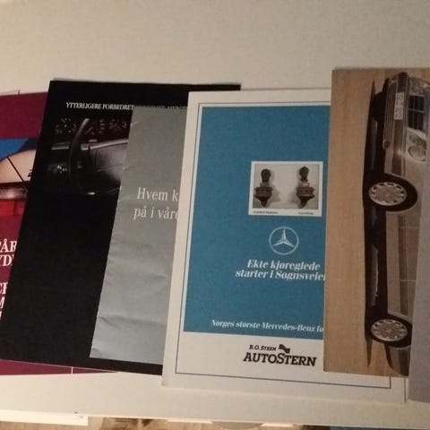 Mercedes-Benz brosjyrer og postkort selges sammen.