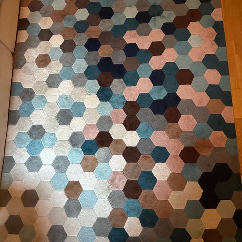 Teppet har vært brukt på soverom og stue, uten mye trafikk men kunne hatt godt av en rens nå når det skal bytte hjem.