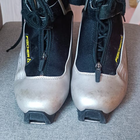 Ski fisher 160 cm. "Smal" ski. Rottefella binding, justerbar etter skolengde. Noen bruksmerker på såle. 150,-