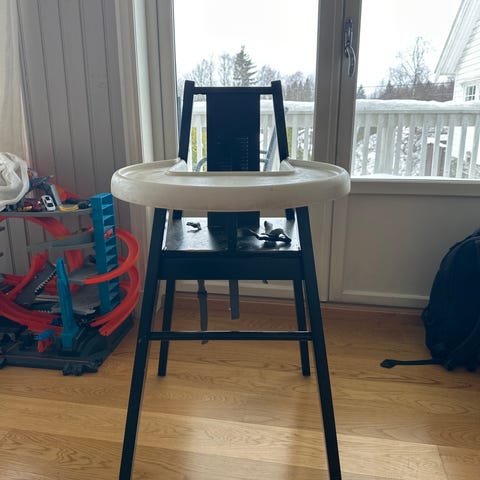 Barnestol med brett hvit plast