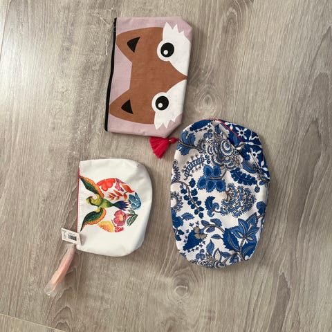 2 ubrukte sminkepunger/toalettmapper. Selges samlet for 50kr