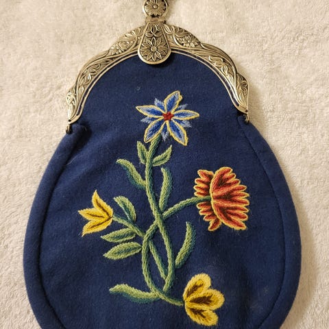 Nydelig silke brokade bunad veske med linfôr
