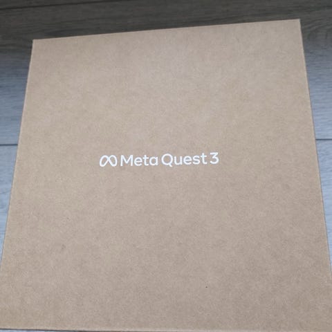 Meta Quest VR-headsett med to håndkontrollere i hvit farge. Standalone VR-headsett som brukes uten ekstern konsoll eller PC, med justerbar hodestropp og integrerte sensorer i brillen. Kontrollerne har sporingsringer og flere knapper for interaksjon i VR-miljøer. Egnet for spill og andre VR-opplevelser i hjemmet. Det følger med hodetelefon-/stroppfeste og standard reimer på kontrollerne, slik det vises på bildene.