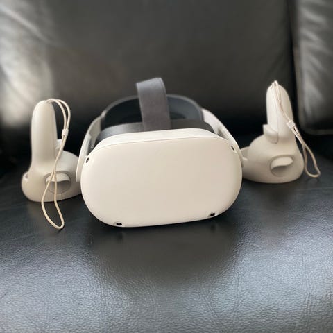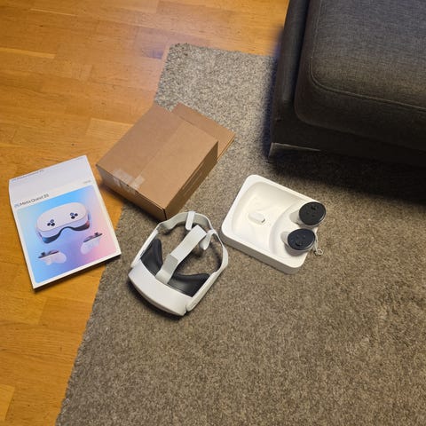 Meta Quest VR-headsett med kontrollere hvit