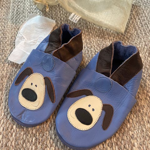 Skinntøfler for 12-18 mnd. Passer ca str 20-22.