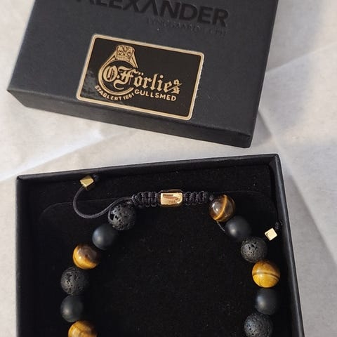 TRENDHIM armbånd for unisex i stål. Elastisk perlearmbånd med runde perler i ulike farger og metallfargede detaljer. Rektangulær stålbrikke med gravert tekst. Leveres med oppbevaringspose som vist på bildene.