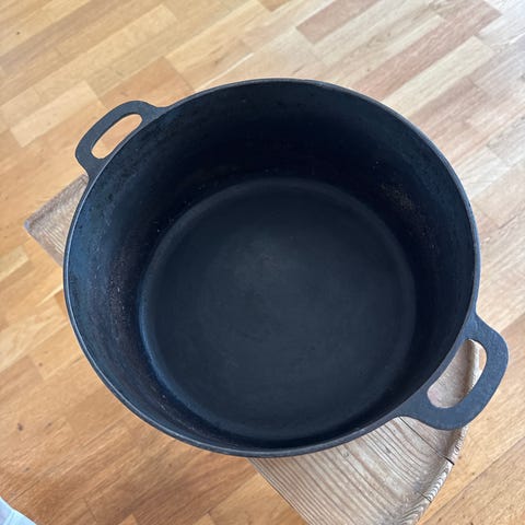 Jerngryte med flat bunn.