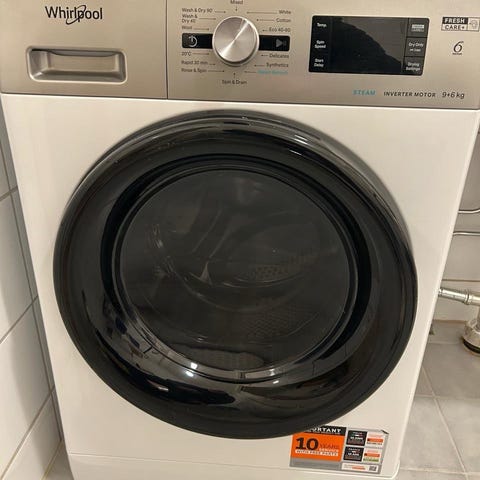 Selges kun fordi vi tidligere hadde lite bad og trengte en plassbesparende kombimaskin. Nå har vi fått eget vaskerom og har derfor gått over til separat vaskemaskin og tørketrommel.