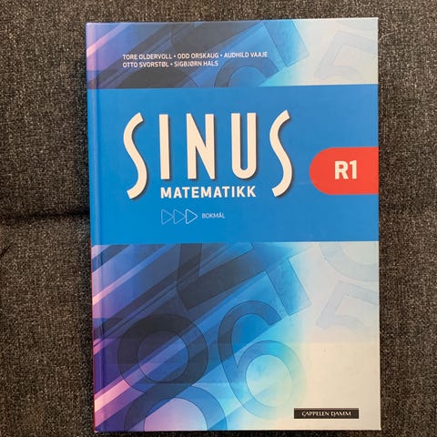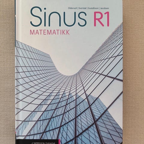 Sinus R1 matematikk lærebok i faget matematikk og statistikk. Boken dekker pensum i programfaget matematikk R1 i videregående opplæring. Inneholder teori, eksempler og oppgaver innen algebra, funksjoner, geometri, sannsynlighet og andre emner i R1-kurset. Egnet som hovedbok for elever i videregående skole eller som repetisjons- og oppslagsverk i matematikk på tilsvarende nivå.