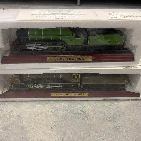 Modellen forestiller damplokomotivet «Pacific Chapelon Nord» og står montert på en mørk sokkel med navneplate. Lokomotivet er detaljert med hjul, stenger og markeringer på siden. Leveres i isoporeske med plastvindu for beskyttelse og oppbevaring.