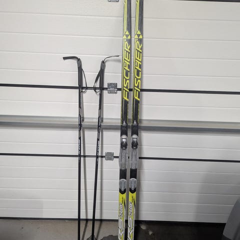 Sett med langrennski og staver egnet til turbruk i preparerte spor.
