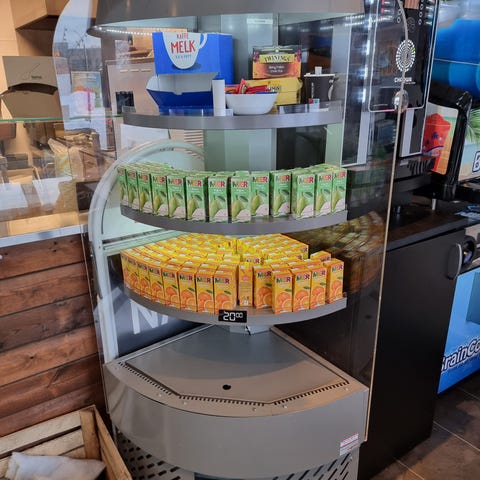 Rustfri kjøledisk med underskap for servering av mat og drikke. Enheten består av en glassmonter øverst for presentasjon av ferdig mat, bakervarer eller påsmurte produkter, samt kjølte underskap med dører for oppbevaring av drikke og råvarer. Kjøledelen har hyller for organisering av innholdet og digitalt betjeningspanel i front for innstilling og avlesning av temperatur. Egnet for bruk i kafé, kantine, bakeri eller andre serveringssteder som trenger kombinert utstilling og kjøling av produkter.