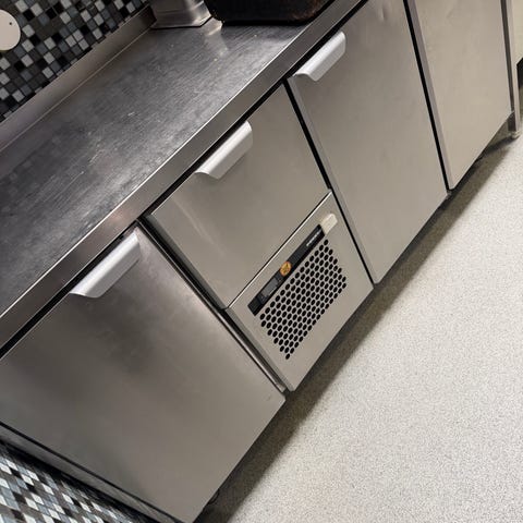Rustfri kjøledisk med underskap for servering