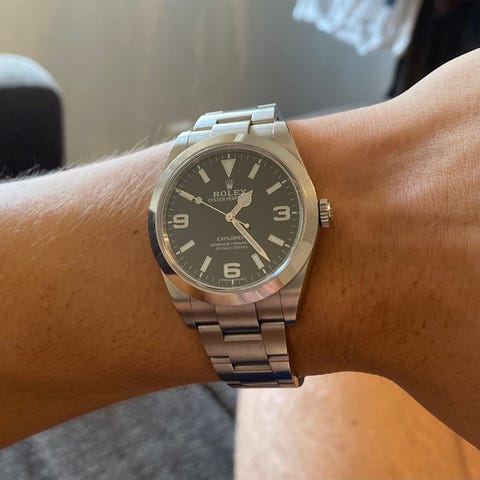 Ekstremt fin finish, skrudde ledd, hurtigjustering i låsen og safirglass. Bærer veldig fint på hånden
