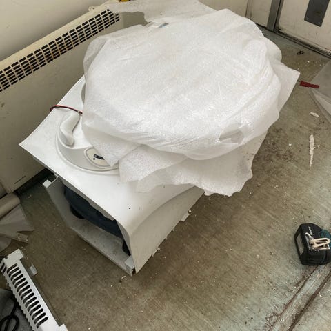 Håndvask med servant og integrert armatur fra ukjent merke. Enheten ser ut til å være laget i et slitesterkt materiale med grå overflate. Passer til bruk på bad, vaskerom eller andre rom hvor det er behov for en kompakt vaskeløsning. Det følger med enkelte rørdeler slik som vist på bildet. Annen teknisk informasjon, mål og tilkoblingsdetaljer er ikke oppgitt og må eventuelt måles eller sjekkes ved befaring. Passer i buss eller campingvogn eller liten hytte uten innlagt vann