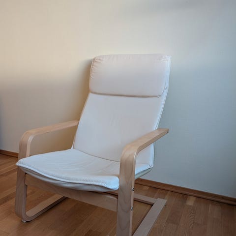 Selger pent brukt lenestol fra IKEA. Noen flekker på trekket, ikke forsøkt å vaske eller rense. Kan også kjøpes nytt trekk til stolen.