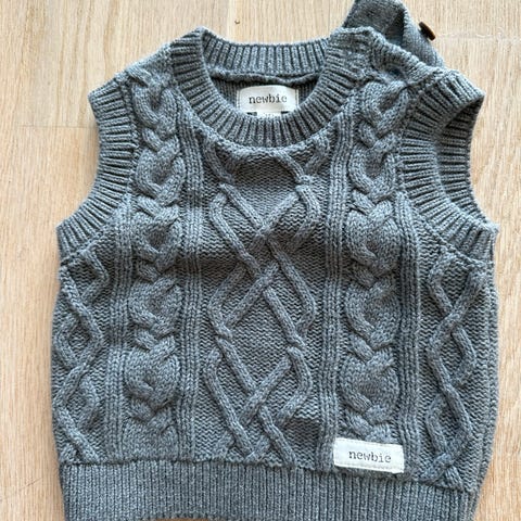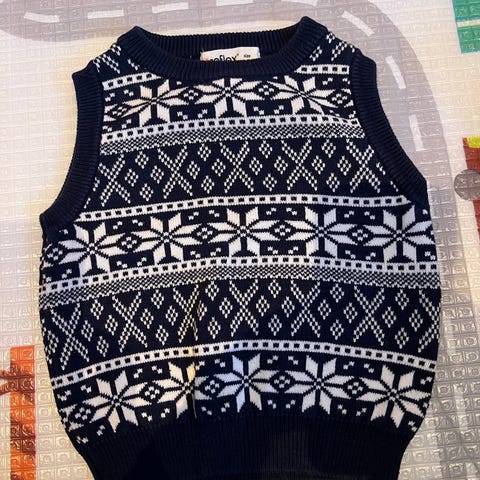 Strikket vest med mønster i bomull til gutt i størrelse 56. Vesten egner seg godt over body.