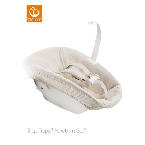 Stokke Tripp Trapp Newborn sete i beige, med vendbart beskyttelsestrekk. Setet festes til Stokke Tripp trapp stol, og kan brukes fra nyfødt. Beskyttelsestrekket har to ulike mønster, kan tas av og vaskes. Selene på stolen kan justeres i alle festepunkter.