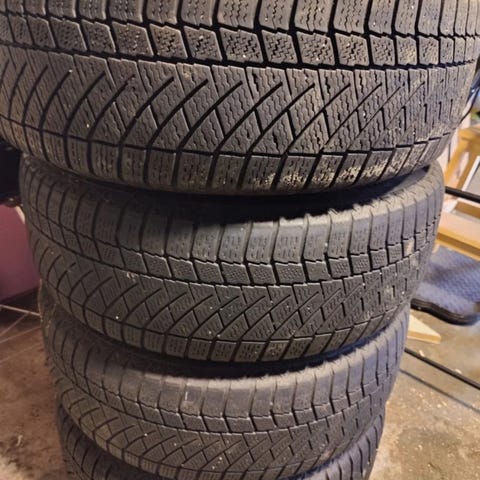 195/65-15 piggfrie vinterhjul 2 stk. Lagt kaldt og mørkt. 1 helt nytt, 1 så vidt kjørt på. Tlf 95871125.