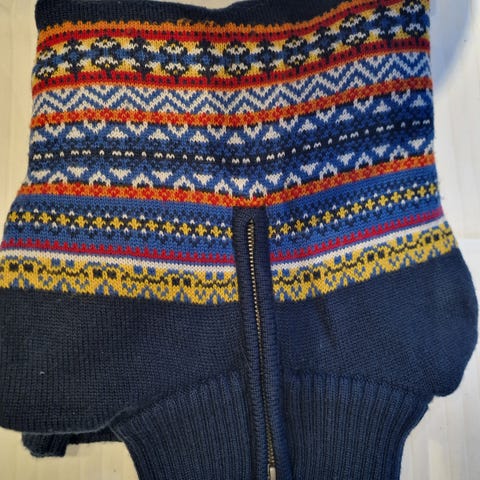 Ulldress med ulllue str 86. Hull i kne. Stor i str.