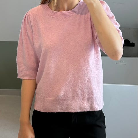 Nydelig strikkegenser i en lys dus lilla/rosa farge. 12% ull. Merke MbyM.