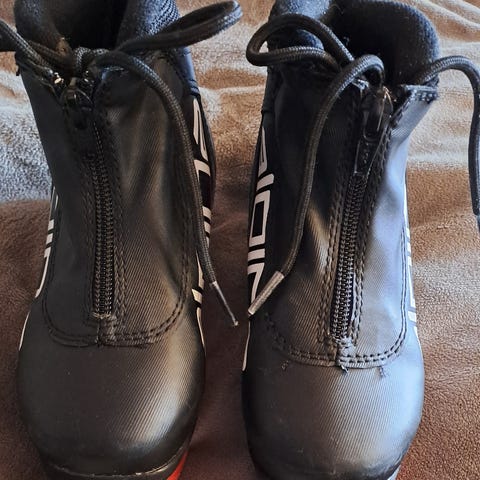 Alpina T5 Jr langrennsstøvler i størrelse 29. Støvlene er svarte med glidelås i front og rød detalj på sålen. De er beregnet for barn/unge og har myk, polstret innside for bedre komfort og varme. Sålen er tilpasset klassisk langrenn med kompatibelt bindingssystem (se bilder av såle for type). Egner seg til bruk på langrennsturer og skileik.