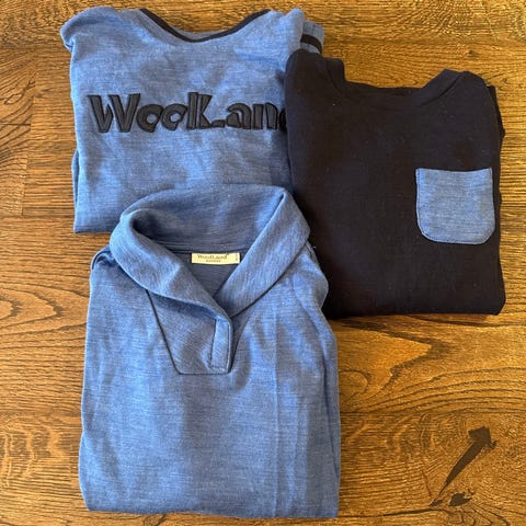 MarMar Copenhagen genser for barn i ribbestrikket bomull. Unisex-modell. Den grønne er str 5 år/110. På den svarte er lappen i nakken tatt av, den er litt større som kan sees på bilde. Vil anslå str 6-7 år på den. Genserne har lange ermer, rund hals og knappestolpe foran.