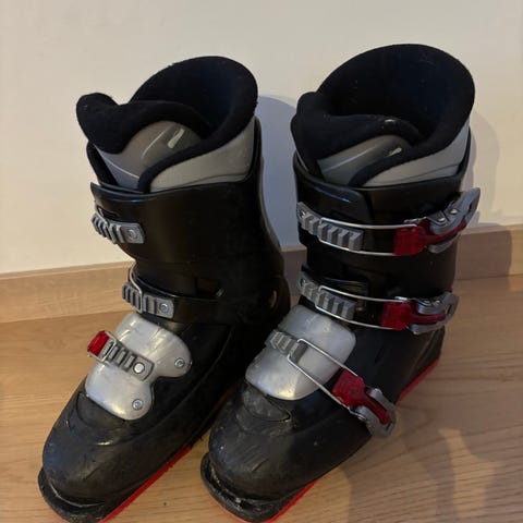 Tecno Pro CT 40 alpinstøvler for barn i svart og hvit farge. Støvlene har to spenner med justerbare reimer for god tilpasning rundt fot og legg. Myk polstring rundt skaftet gir økt komfort. Sålen har struktur og skruer for bedre feste mot underlaget når man går med støvlene. Egnet til alpint bruk for barn som trenger stabile og enkle skistøvler. Størrelse 34/35. Bør prøves. Må hentes.