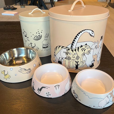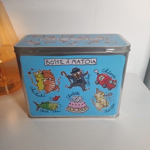 Mummi oppbevaringsboks i metall med lokk. Boksen er kremfarget, og er fra den første runde med Mummi bokser til dyr 🥰 Selger da eg ikke bruker den til noe 🤷 ♀️