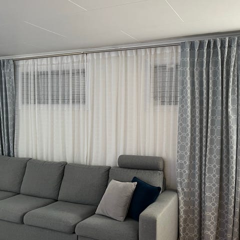 Gardinene er 140 bred og 230 høy.