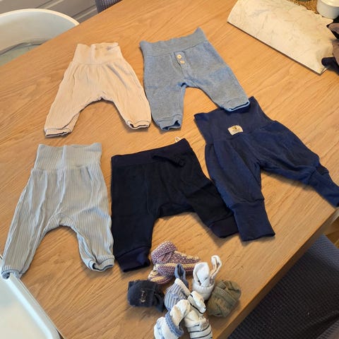 3 bukser med for i str 56. Favoritter i babytiden her 🫶🏼