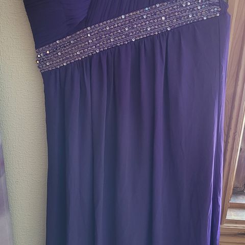 Selger flott, svart festkjole, one shoulder-kjole. Paljetter og "stener" (ikke ekte stener) i brystparti. Noen tråder må kanskje klippes/festes i dette området.