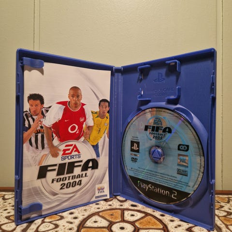 Selger FIFA Football 2004 til PlayStation 2. Dette er kun original disk, uten cover og manual. Disken er godt brukt med synlige bruksmerker, men har vært oppbevart i etui.