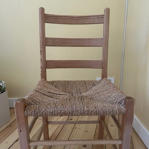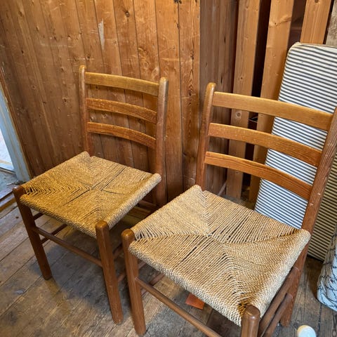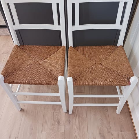 Stolen uten maling burde nok flettes, men den kan fortsatt sittes på, koster 500 kr (SOLGT) Den andre med maling koster 300 kr.