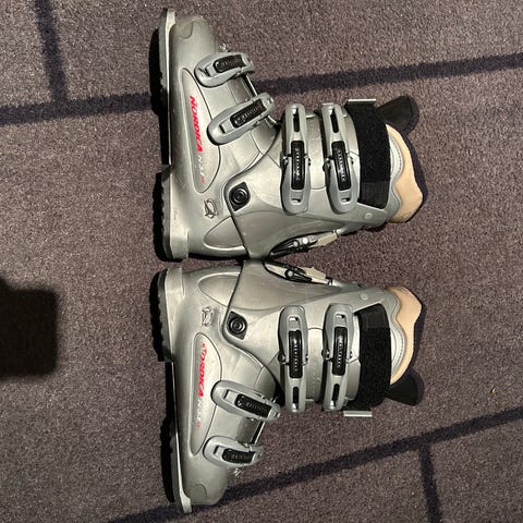 Nordica alpinstøvler i svart med røde og hvite detaljer. Støvlene har fire justerbare spenner og powerstrap øverst for bedre tilpasning rundt leggen. Innvendig har de polstret, rød innerstøvel for komfort og støtte. Sålen har mønster for bedre feste ved gange og er festet med skruer. Egner seg til vanlig alpinkjøring i preparerte anlegg. Størrelse 36/37 - bør prøves. Må hentes.