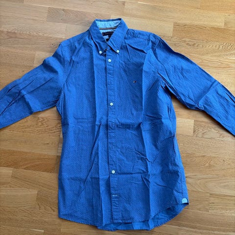 Tommy Hilfiger skjorte for herre i størrelse S. Skjorten er grønn og laget av bomull. Modellen har regular fit og klassisk krage med knapper. Passer til hverdagsbruk eller mer formelle anledninger, og kan brukes alene eller under genser eller jakke.