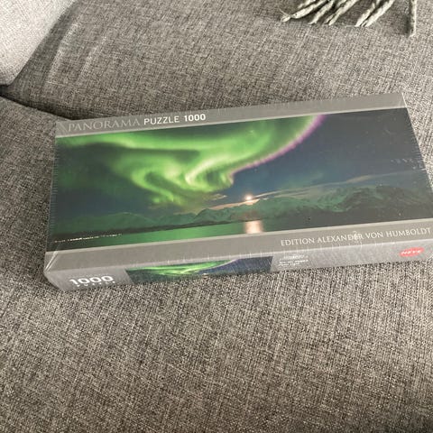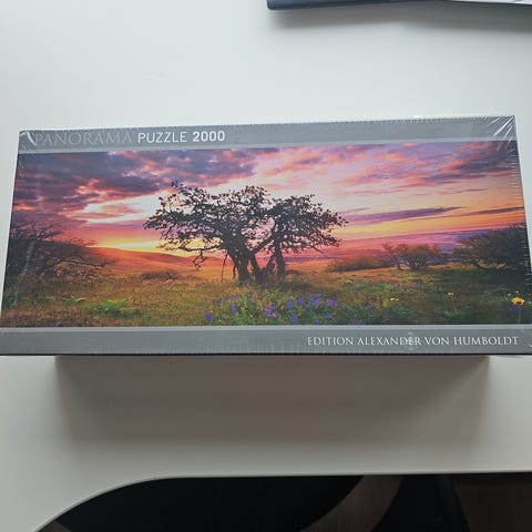 Heye Edition Humboldt Paradise Palms panorama puslespill med 2000 brikker. Motiv av tropisk strand med palmer, hav og skyer. Ferdig puslet størrelse er ca. 136 x 48 cm. Egnet for ungdom og voksne som liker detaljerte panoramamotiver.