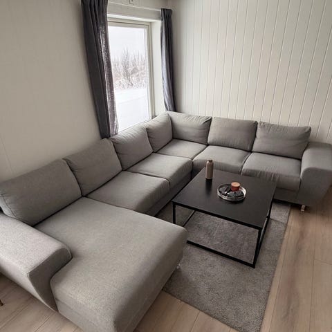 Formfin Free hjørnesofa og 2 stk lenestoler m/pall - alt i samme stoff og farge