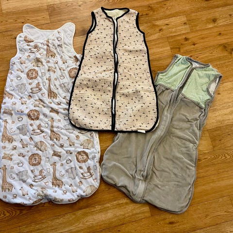 Kan kombineres med heldrakter, bodyer eller innersoveposer. Vi brukte soveposene praktisk talt hele året. Over 25 grader Celsius brukte vi bare innersoveposene, men det var ekstremt sjeldent.