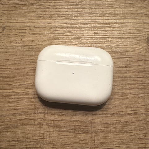 Apple headset i hvit farge. Trådløst ørepropp-headset med ladeetui som vist på bildene. Passer til enheter som støtter trådløs tilkobling fra Apple. Egnet til daglig bruk som lytting til musikk, podkast og samtaler. SELGES UTEN ØREPROPPER.