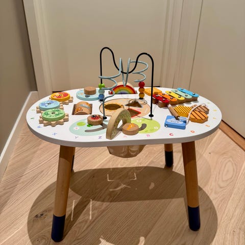 Aktivitetsbord fra Le Toy Van selges. Mangler en av de tre putteklossene.