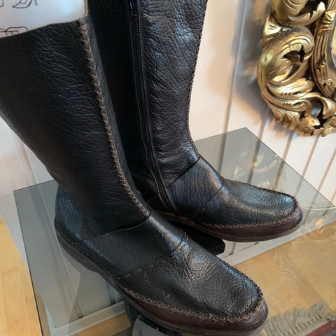 Skinn- og ull-støvletter fra nederlandske Kiboots i størrelse 40. De er små, så passer bedre 39 (og kanskje 38 med såle)